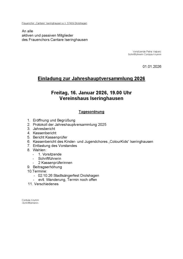 Zur Jahreshauptversammlung am 16.01. laden wir alle aktiven und passiven Mitglieder um 19 Uhr ins Vereinshaus ein. Die Tagesordnungspunkte sind aus der Einladung zu entnehmen.